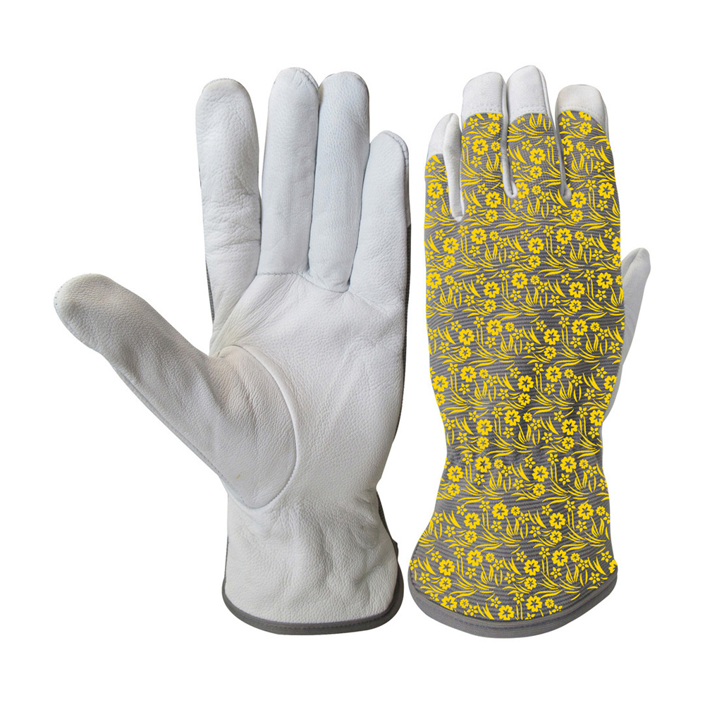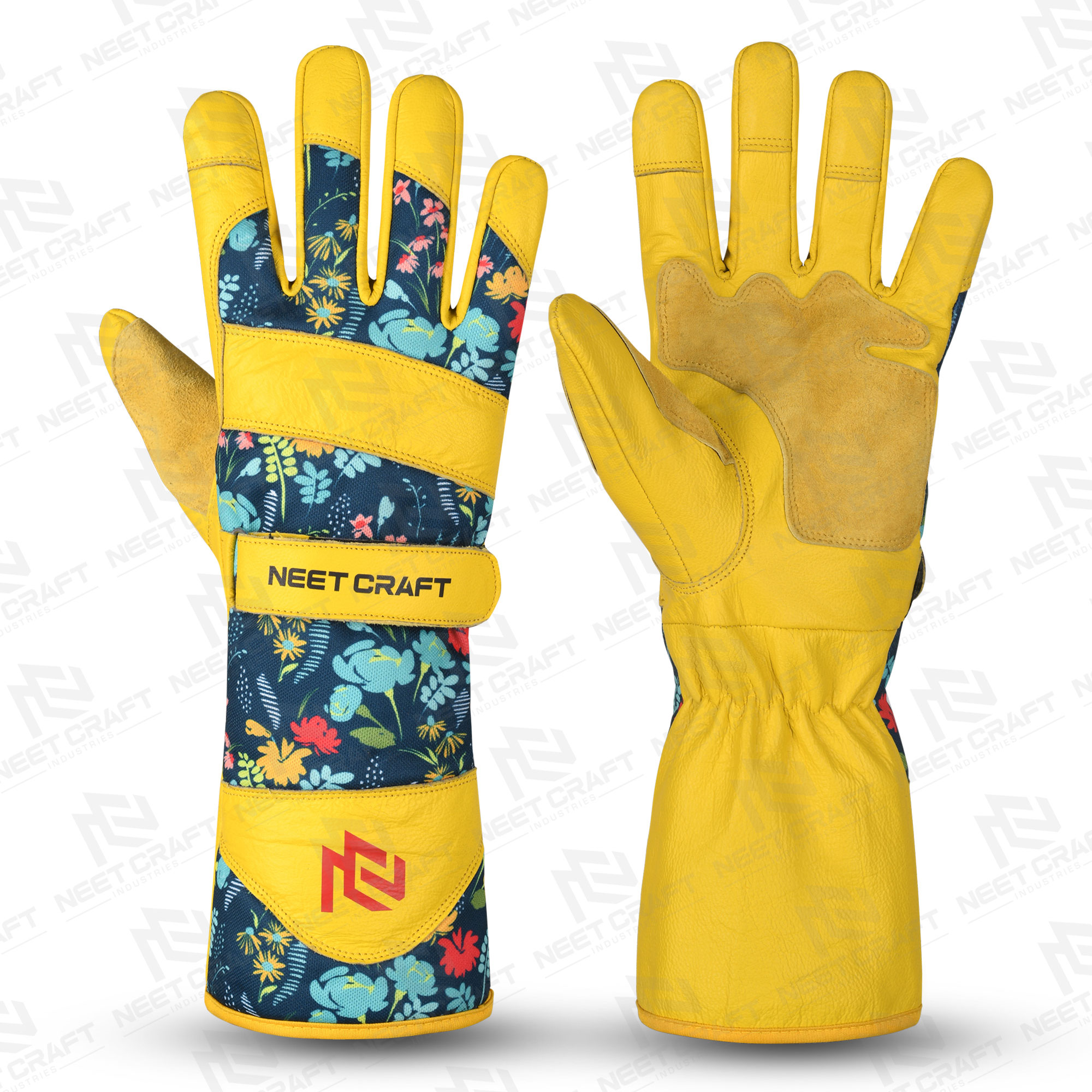 NeetCraft FloraGard Leather Gardening Glove (Yellow/Floral Print)
