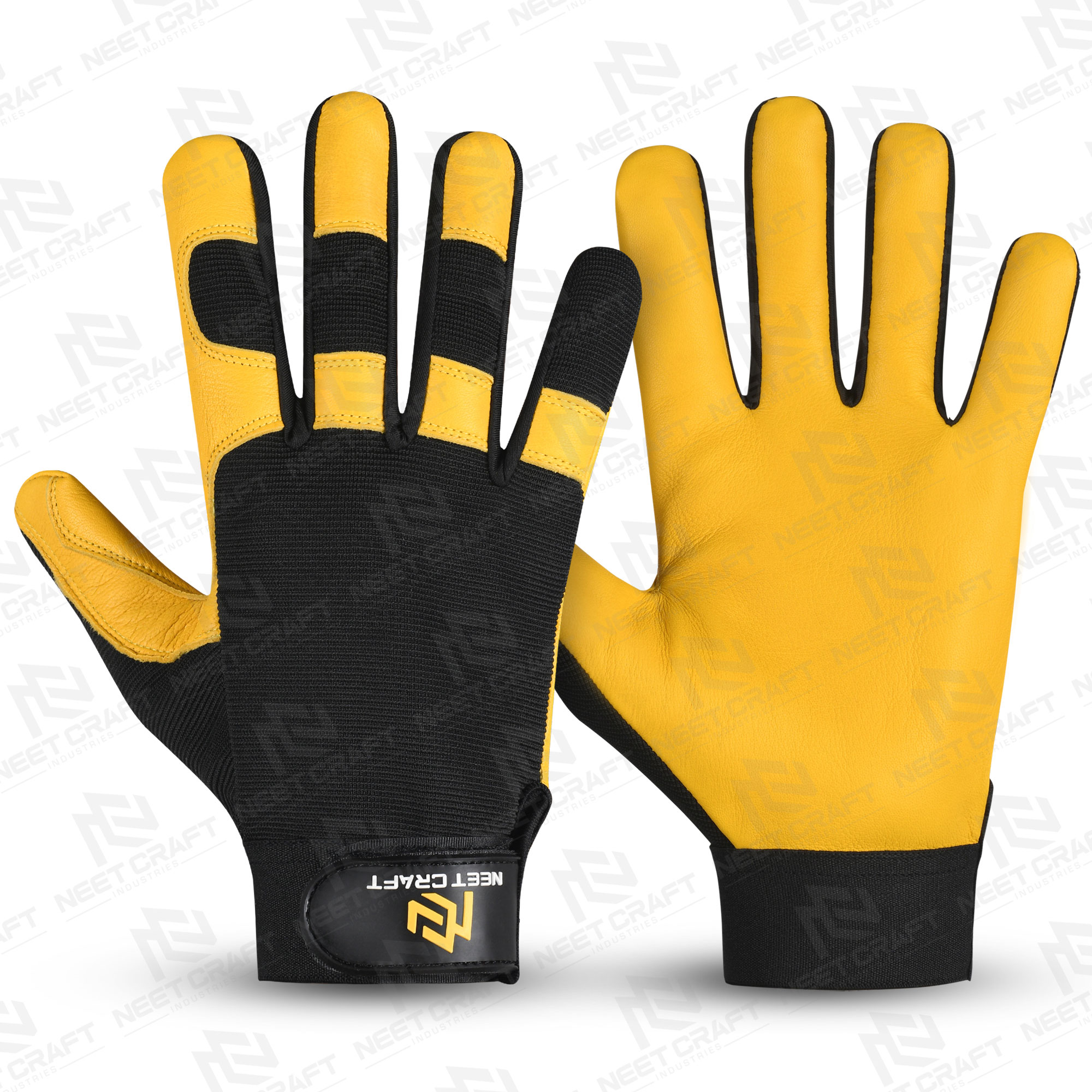 NeetCraft Classic Leather Palm Work Glove (White/Yellow)